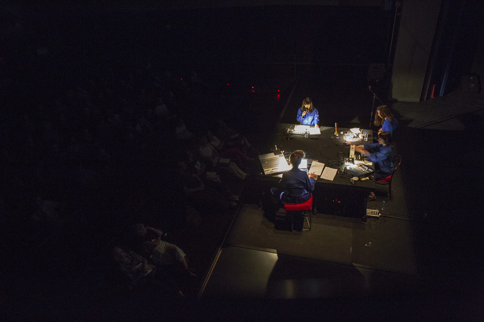 Mink is Marta Ångela, Inês Castanheira and Diana Combo directed by Kaffe Matthews and commissioned by Sonoscopia for Colexpla International Festival of Sonic Explorers, Teatro Carlos Alberto, Porto, September 2018. Working live with DIY electronics, voice, software, field recordings, a pau, improvisation and multichannel diffusion, together they explore the phenomenon of magnetism through contemporary urban landscapes and the human body, going deep underground in air and underwater, creating unknown and curious atmospheres via massive and intricate noise fields to the tiniest of details.