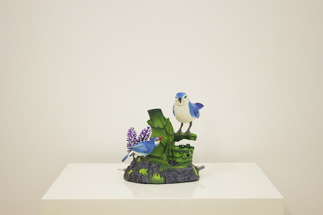 The series of objects P#i¶îuPi‰Piu consists of decorative sound toys modified through the hacking of its electronic circuit for the creation of new instruments. Of various shapes and different sounds, these objects were explored using the technique of circuit bending, looking for random sounds in their internal circuits or simply manipulating the recorded sound of birdsong, distorting or altering their speed by adding new electronic components. In the format of sound installations, this objects were presented at exhibitions, interacting with the public in order to create a sound environment consisting of distortions and noises of modified birds singing.